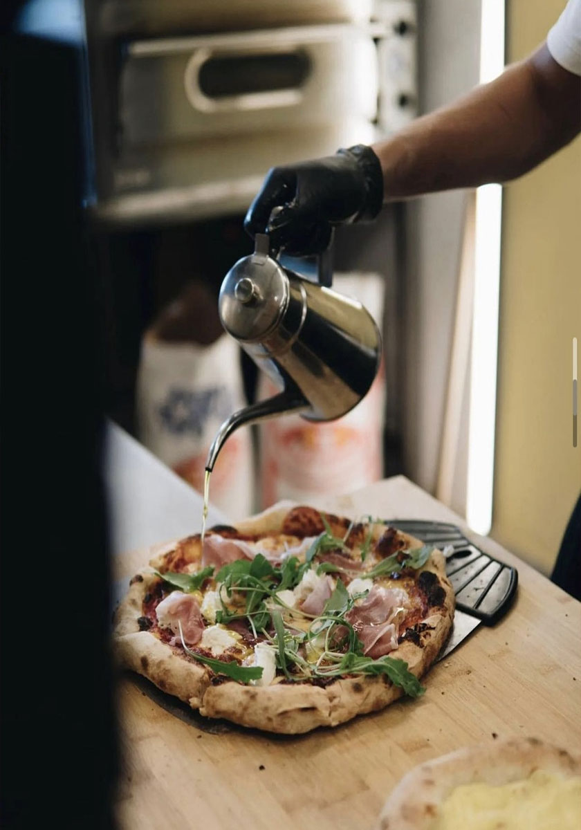 Καθημερινά παρασκευάζουμε με φυσικό προζύμι το ζυμάρι μας, το οποίο ωριμάζει για 48 ώρες πριν γίνει μια από τις ιδιαίτερες αλλά και παραδοσιακές πίτσες μας .
