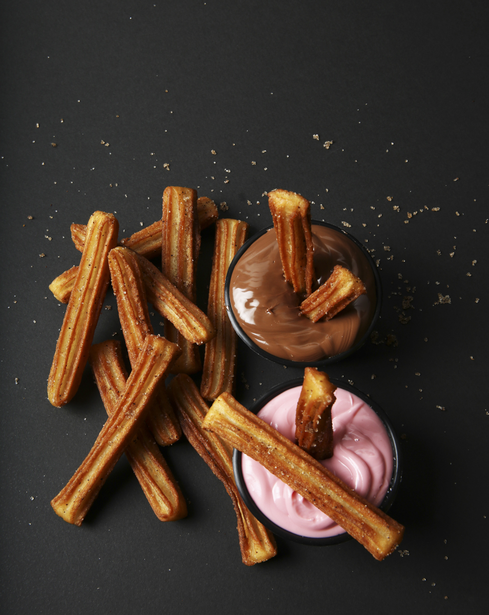 7 churros +υλικά της επιλογής σας. ( Πραλίνα Bueno, Πραλίνα Lila Pause, Μπισκότο Oreo, Πραλίνα λευκή σοκολάτα, Σπιτική μαρμελάδα φρούτα του δάσους)
