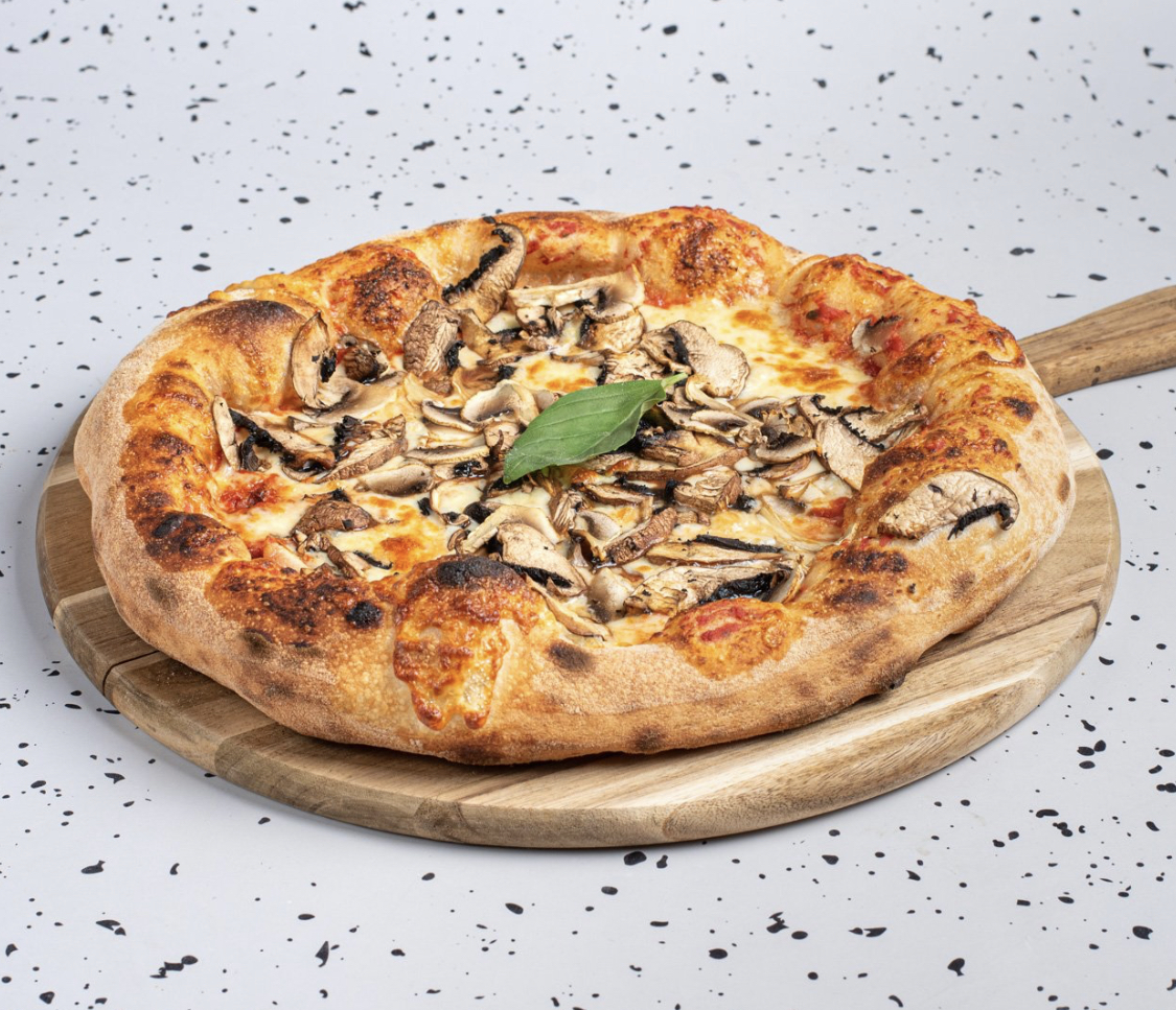 Σάλτοα τομάτας San Marano, mozzarella, μανιτάρια porto bello, μανιτάρια champignon & λάδι λευκής τρούφας