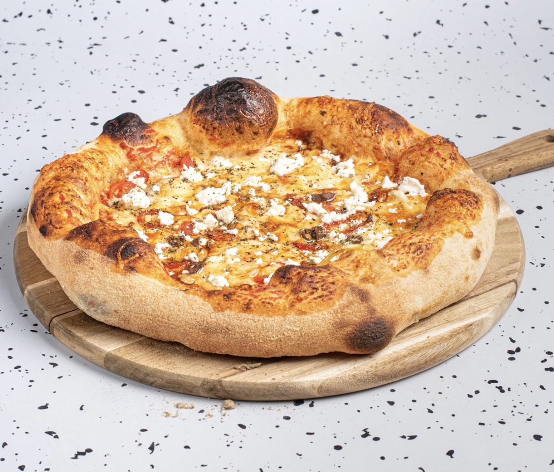 Σάλτοα τομάτας San Marzano, mozzarella, τοματίνια, ελιά μαύρη, φέτα, πιπεριά, ρίγανη & έξτρα παρθένο ελαιόλαδο