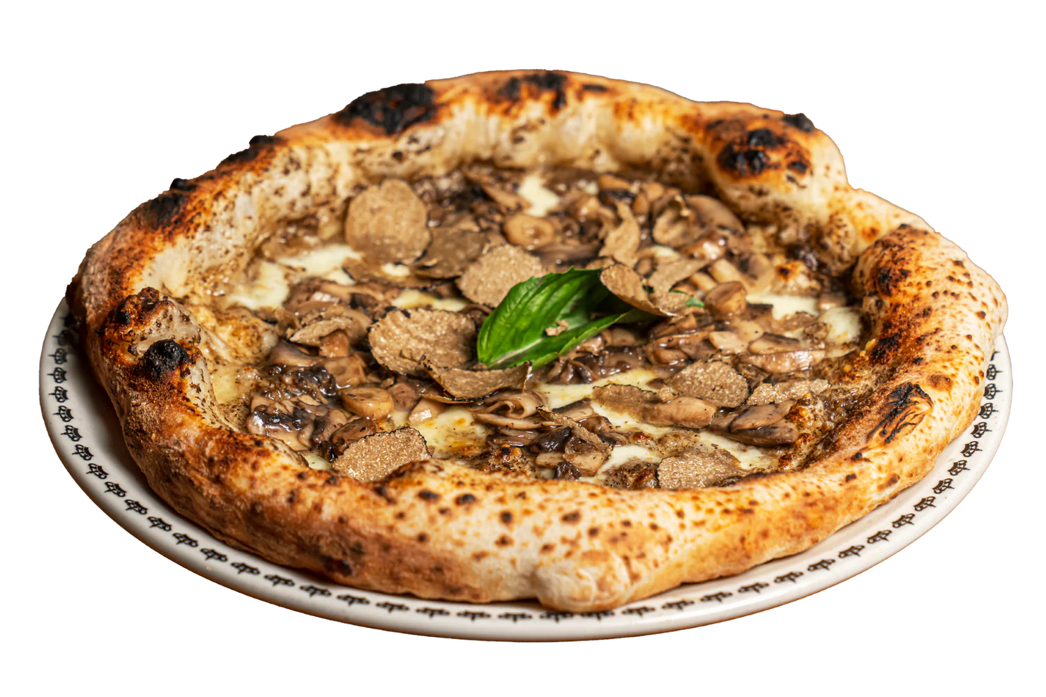 Κρέμα τυριού, di burrata, pecorino, mix μανιταριών, φρέσκο πιπέρι, φρέσκος βασιλικός, λάδι τρούφας
